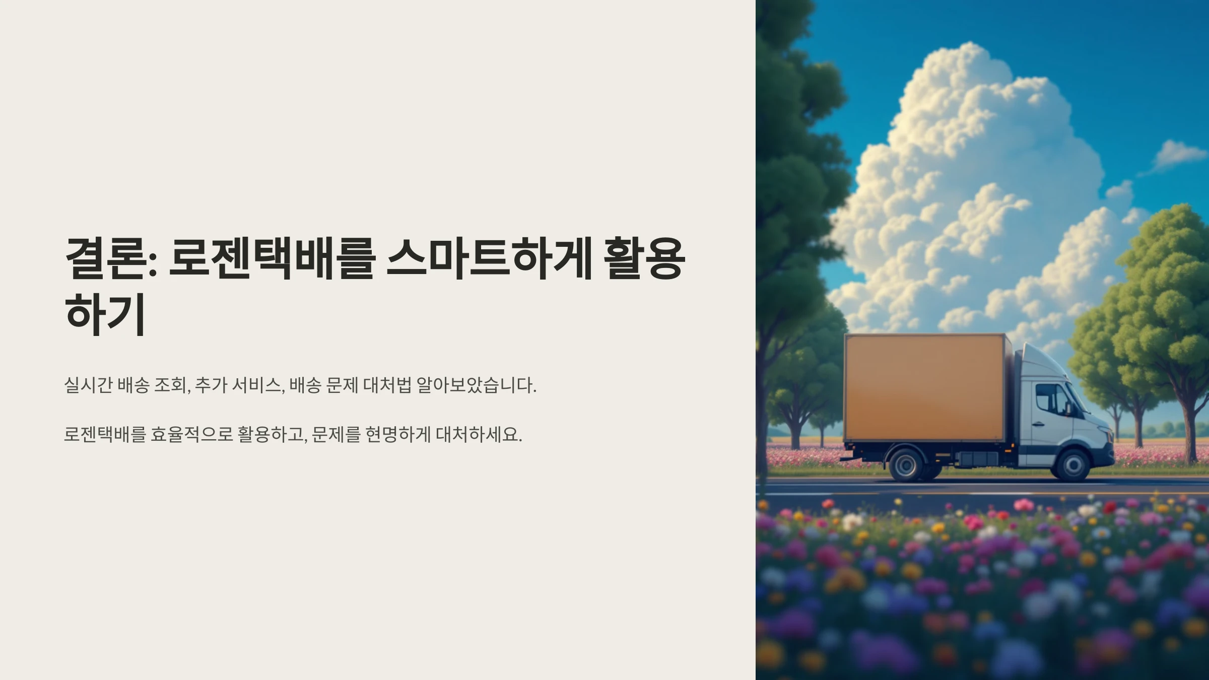 로젠택배로 물건을 보내거나 받을 때, 현재 택배가 어디쯤 있는지 바로 확인하고 싶으신가요? 또한 부가 서비스를 잘 활용하면 시간도 절약되고, 배송 중 문제가 생기더라도 빠르게 대응할 수 있습니다. 이 글에서는 로젠택배의 실시간 배송조회 방법과 유용한 추가 서비스, 그리고 분실·파손 같은 상황에서 어떻게 행동하면 좋은지까지 실용적으로 정리해 드립니다. 로젠택배를 더 똑똑하게 쓰고 싶은 분들은 끝까지 읽어보세요.