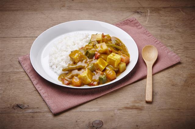 고기 대신 식감 좋은 버섯(표고, 느타리)이나 렌틸콩을 사용하세요. 우유 대신 코코넛 밀크를 쓰면 고소하고 크리미한 비건 카레가 됩니다.
